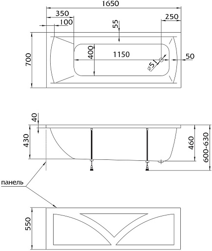 100Acryl Акриловая ванна Acryel 165x70