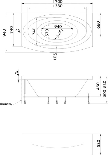 Акриловая ванна 100Acryl Acrylega 170x95 - арт. 01лег1795.
