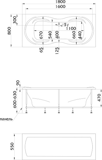 Акриловая ванна 100Acryl Acrylora 180x80 - арт. 01лор1880.