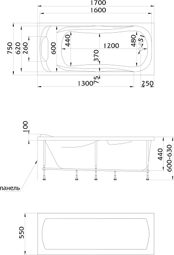 Акриловая ванна 100Acryl Dany 170x75 - арт. 01дан1775.