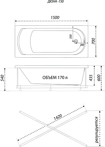 Акриловая ванна 1ACReal Дюна 150x70 - арт. Щ0000046111.