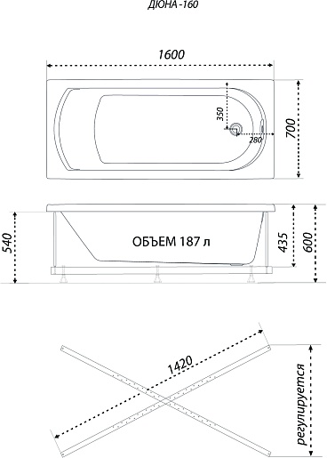 1ACReal Акриловая ванна Дюна 160x70