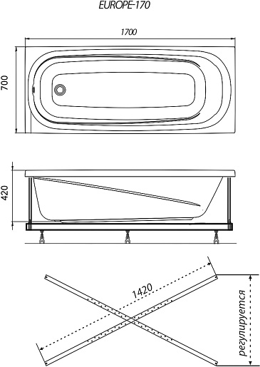 Акриловая ванна 1ACReal Европа 170x70 - арт. Щ0000040925.
