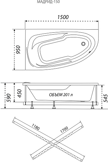 Акриловая ванна 1ACReal Мадрид 150x95 R - арт. Щ0000045644.