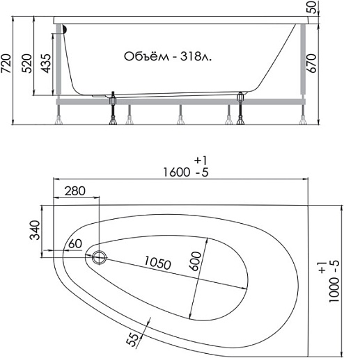 Акриловая ванна 1ACReal Marseille 160x100 L - арт. BBA-ME161X0-00L.