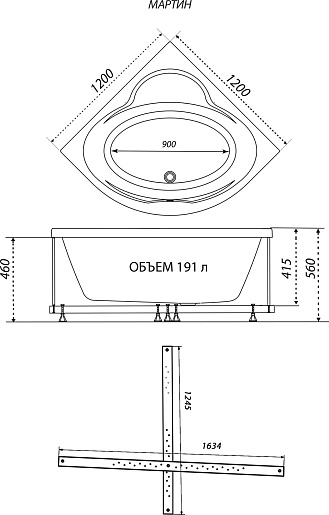 Акриловая ванна 1ACReal Мартин 120x120 - арт. Щ0000045647.