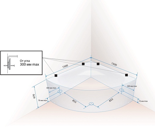 Акриловая ванна 1ACReal Moscow 150x150 - арт. BBA-MW1515X0-00U.