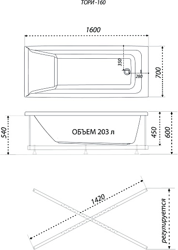 1ACReal Акриловая ванна Тори 160x70