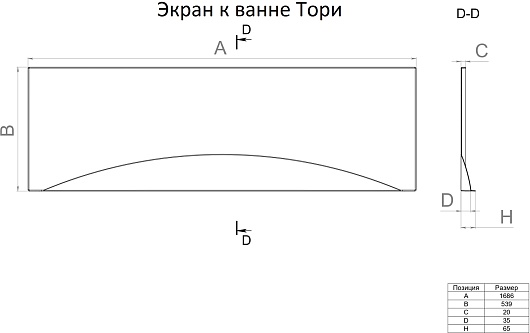 Фронтальный экран для ванны 1ACReal Тори 170 - арт. Щ0000042933.