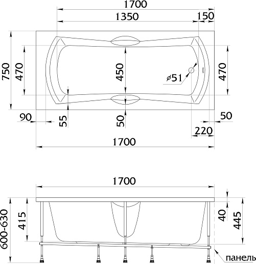 1Marka Акриловая ванна Agora 170x75 – картинка-7