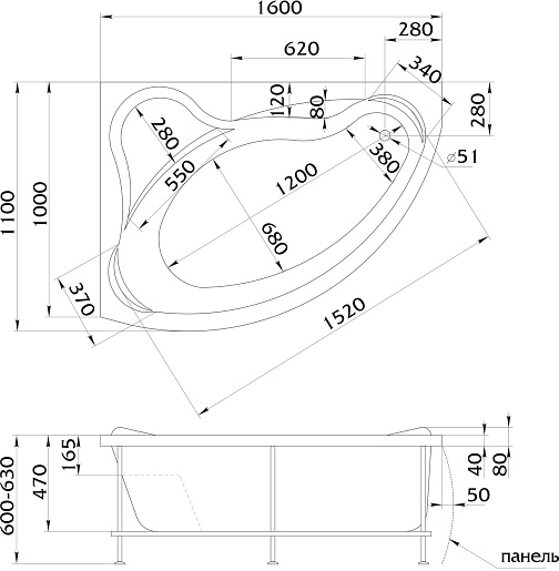 Акриловая ванна 1Marka Catania 160x110 L - арт. 01кт1610л.
