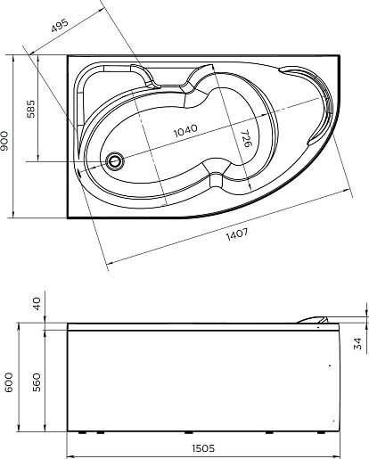 1Marka Акриловая ванна Diana 150x90 R