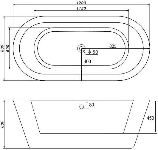 Акриловая ванна Abber AB9213 170x80.