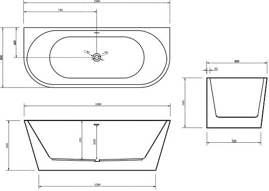 ABBER Акриловая ванна AB9216-1.5 150x80