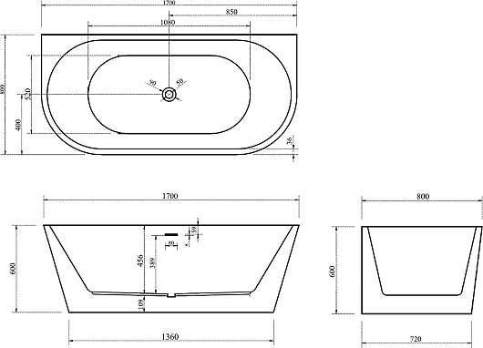 ABBER Акриловая ванна AB9216-1.7DB 170x80