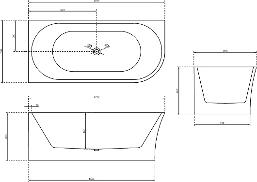 ABBER Акриловая ванна AB9257-1.7 170x78 L