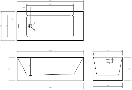 Акриловая ванна Abber AB9274-1.7 170x75.