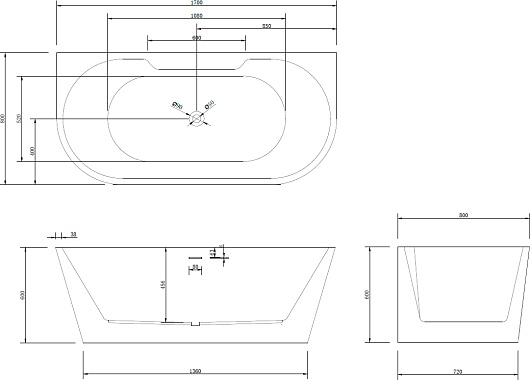 ABBER Акриловая ванна AB9296-1.7 170x80