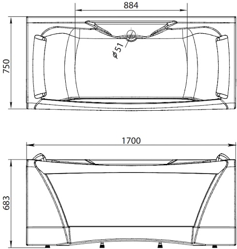Акриловая ванна Aima Dolce Vita 170x75 - арт. 01дов1775.