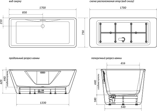 Акриловая ванна Aima Icon 170x75 - арт. 01айк1775.