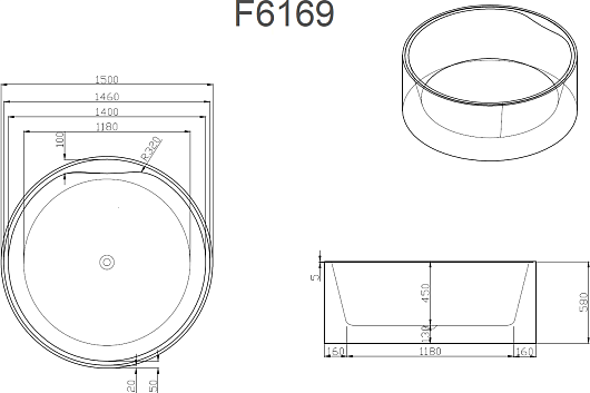 Отдельностоящая акриловая ванна Frank F6169 150х150 white - арт. 12532.