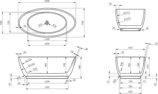 Отдельностоящая акриловая ванна Frank F6016 160х80 white - арт. 125096.
