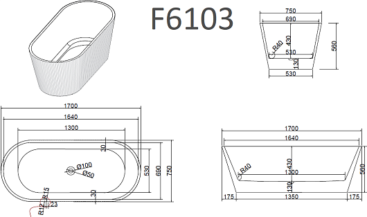Отдельностоящая акриловая ванна Frank F6103 170х75 black - арт. 12314.