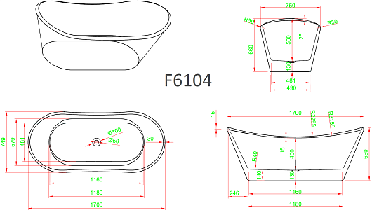 Отдельностоящая акриловая ванна Frank F6104 170х75 white/light blue - арт. 125122.