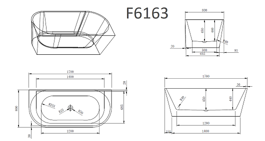 Отдельностоящая акриловая ванна Frank F6163 170x80 black/white - арт. 12531.