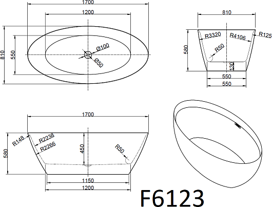 Frank Акриловая ванна 170x81 F6123 black/white