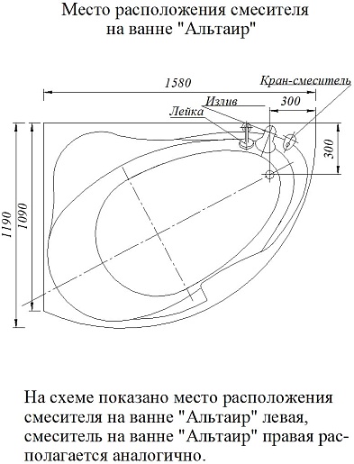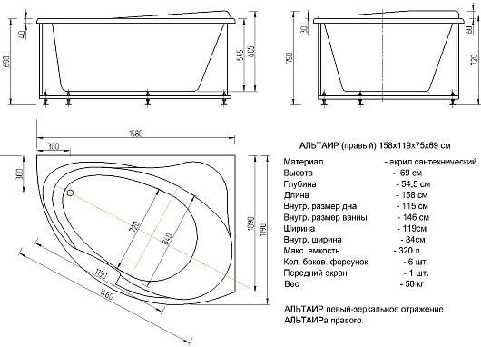 Акриловая ванна Aquatek Альтаир R - арт. ALT160-0000047.