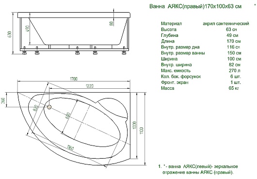 Акриловая ванна Aquatek Аякс 2 170x110 L - арт. AYK170-0000005.