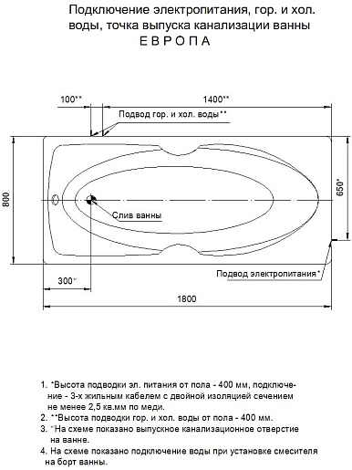 Комплектация: ванна, каркас, фронтальная панель, слив-перелив.