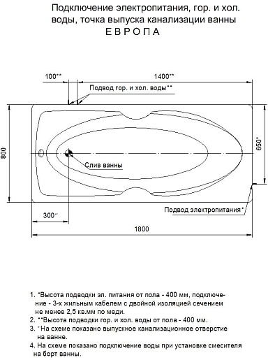 Комплектация: ванна, каркас, фронтальная панель, слив-перелив.