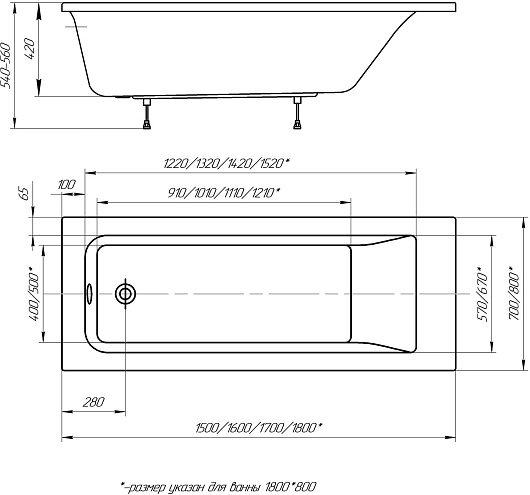 Акриловая ванна Aquatek Калибри 180x80 - арт. KL180-0000001.