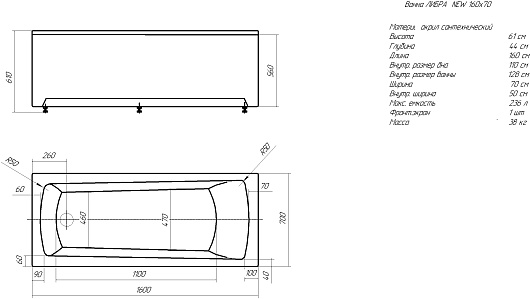 Акриловая ванна Aquatek Либра New 160x70 - арт. LIB160N-0000006.