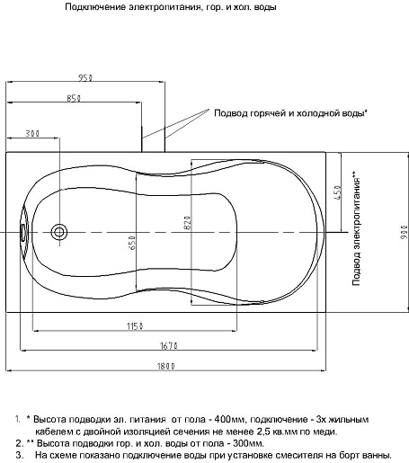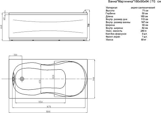 Комплектация: ванна, каркас, фронтальная панель, слив-перелив.