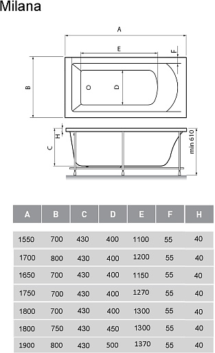 - Усиленные дно и борт ванны.