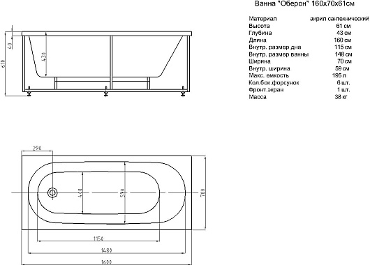 Комплектация: ванна, каркас, фронтальная панель, слив-перелив.