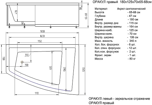 Aquatek Акриловая ванна Оракул 180x125 R с экраном