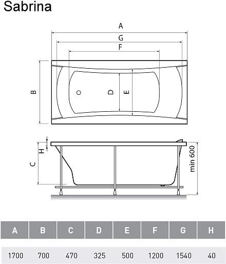 Акриловая ванна Relisan Sabrina 170x70 - арт. Гл000024804.