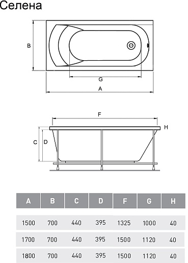 Акриловая ванна Relisan Eco Plus Селена 170x70 - арт. Гл000025995.