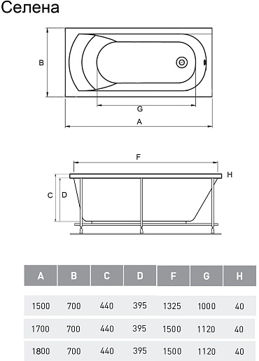 Акриловая ванна Relisan Eco Plus Селена 180x70 - арт. Гл000025997.