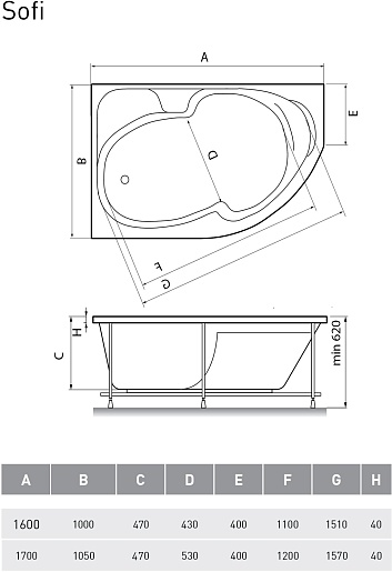 Акриловая ванна Relisan Sofi 160x100 L - арт. Гл000024565.
