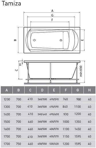 Акриловая ванна Relisan Tamiza 130x70 - арт. Гл000025051.