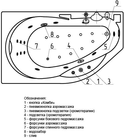 Комплектация: ванна, каркас, фронтальная панель, слив-перелив.