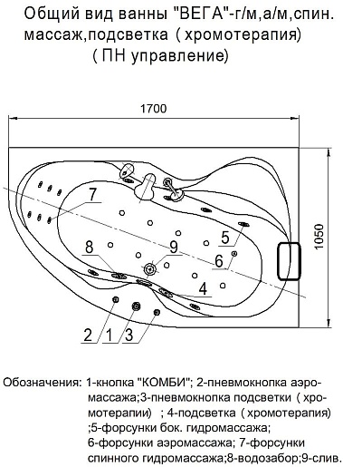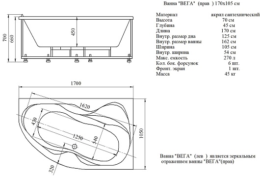 Акриловая ванна Aquatek Вега 170x105 L с экраном - арт. VEG170-0000073.