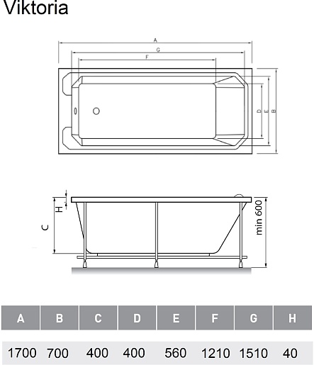 Акриловая ванна Relisan Viktoria 170x70 - арт. Гл000026566.