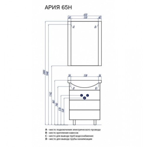 Тумба-умывальник «АРИЯ 65 H»- арт. 1A123401AA430