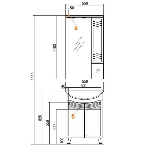 Комплектация: полка – 1, ручка – 2, ножка – 4, раковина «АКВАПОЛО–6533» 65 см (арт. 1WH110162) – 1.